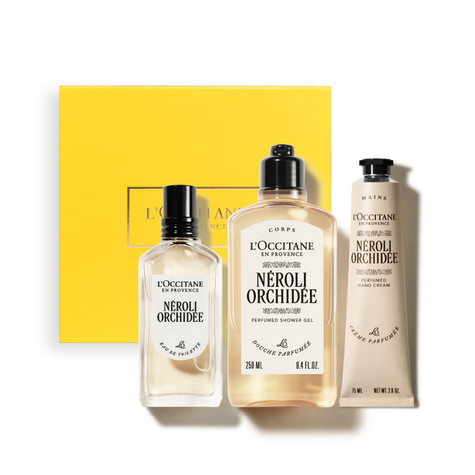 Un ritual floral y sofisticado que celebra la unión perfecta entre la flor de naranjo y la orquídea blanca, símbolo de elegancia y feminidad. Este trío de la línea Néroli Orchidée envuelve la piel en un delicado velo perfumado, aportando suavidad, luminosidad y sensualidad.