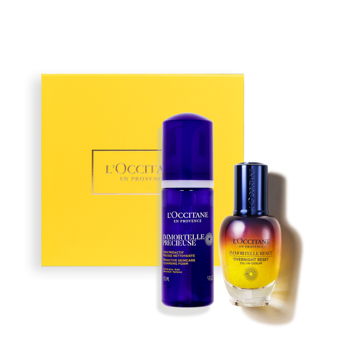 Un ritual facial iluminador y revitalizante que acompaña la piel en su proceso de renovación diaria. La línea Immortelle Preciosa ayuda a limpiar, alisar y revelar una piel visiblemente más fresca y luminosa, mientras Reset actúa durante la noche para apoyar la regeneración cutánea.